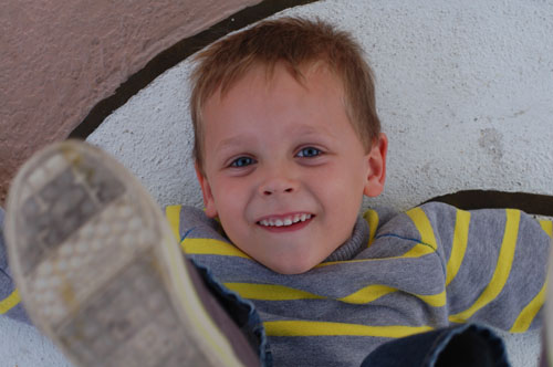 It was a field trip for Levi. I tried to explain to the kids that if we just always turn right we'll get out, but they didn't listen, so we wandered around and around while I dragged a 30 pound sled through the dirt (Noey needs some off-road tires for that thing). As dumb as it sounds to push an umbrella stroller around a sandy dirt field, it ended up helping us navigate. We avoided going down the paths that already had stroller tracks. We eventually traversed the maze, finding all five "stations". I was pretty proud until I heard that was just the kiddie maze.